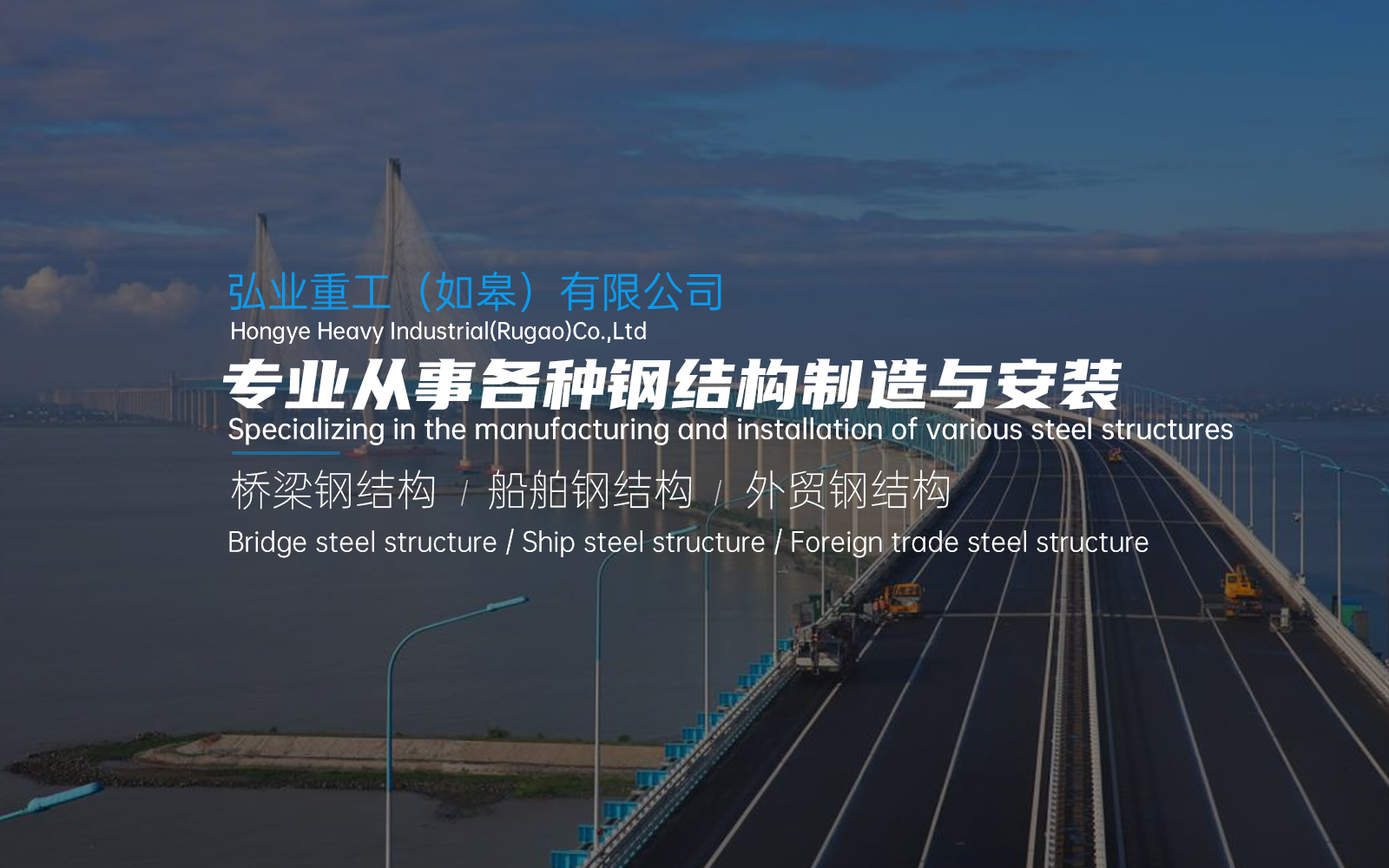 南通弘業(yè)重工有限公司是一家以橋梁鋼結(jié)構(gòu)、船舶鋼結(jié)構(gòu)、外貿(mào)鋼結(jié)構(gòu)制作為主的有限責(zé)任公司。公司坐落在風(fēng)景秀麗、人文薈萃、物產(chǎn)豐富的江海之濱一中國(guó)近代第一城江蘇南通市。公司由董事長(zhǎng)嚴(yán)祥于2015年3月創(chuàng)建,注冊(cè)資本3180萬(wàn)元整。生產(chǎn)基地位于如皋市如皋港熔盛重工廠(chǎng)區(qū)內(nèi),現(xiàn)年總生產(chǎn)量達(dá)15萬(wàn)噸。在激烈的市場(chǎng)競(jìng)爭(zhēng)中“以誠(chéng)信待人、以質(zhì)量取勝、以信譽(yù)為本”為企業(yè)宗旨,基于此前的良好市場(chǎng)口碑、豐富的鋼結(jié)構(gòu)制造經(jīng)驗(yàn)和專(zhuān)業(yè)技術(shù),從事各種鋼結(jié)構(gòu)制造與安裝,并以?xún)?yōu)秀品質(zhì)成功交付多項(xiàng)產(chǎn)品,在重工行業(yè)得到了客戶(hù)的廣泛認(rèn)可,獲得了較高的市場(chǎng)信譽(yù)。Nantong Hongye Heavy Industry Co., Ltd. is a limited liability company mainly engaged in the manufacture of bridge steel structures,ship steel structures and foreign trade steel structure production. The company is located in Nantong City,Jiangsu Province, the first city in modern China with beautiful scenery, cultural gatherings and rich products. The company was founded by Chairman Yan Xiang in March 2015 with a registered capital of 8.31million yuan.The production base is located in the Rongsheng Heavy Factory in Rugao Port,Rugao City.The total annual production capacity is about 150,000 tons.In the fierce market competition, ?treat people with integrity, win with quality, and take credit asthe foundation? isthe corporate tenet. Based on the previous good market reputation,rich experience and professional technology in steel structure manufacturing, we are engaged in the manufacture and installation of various steel structures,and have successfully delivered a number of products with excellent quality, which have been widely recognized by customers in the heavy industry industrial field and won a high market reputation…